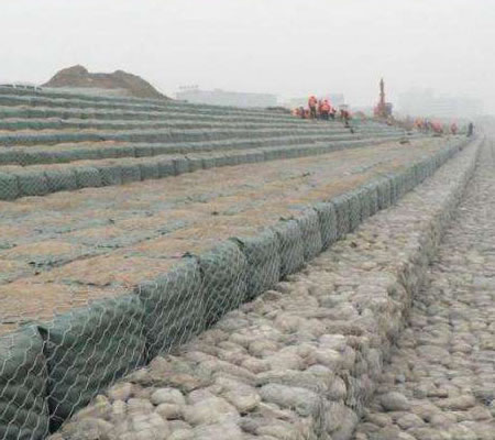 采用六角形雙絞合專用機器編織成形,*后經(jīng)人工握邊、組裝,打包壓縮,運輸?shù)焦こ讨付ǖ攸c。在眾多水利工程項目中網(wǎng)孔在::60*80mm 、