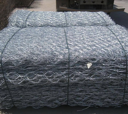 鍍高爾凡石籠網是由經鍍高爾凡(5%-10%鋁鋅合金+稀土元素)防腐處理的低碳鋼絲經機器編織成的六邊形雙絞合鋼絲網,在工廠做成符合工程要求